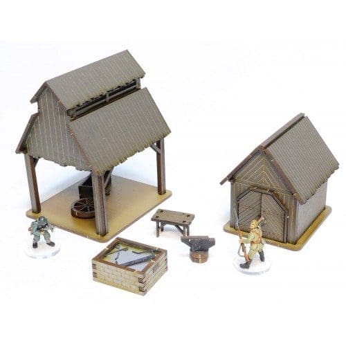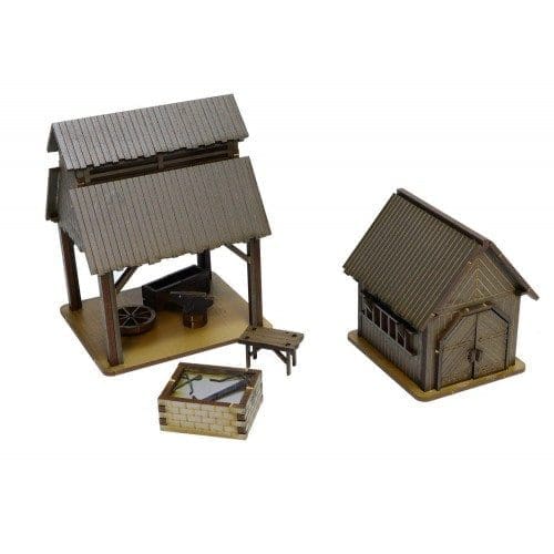 This kit contains a Blacksmith’s Workshop and a Tool Shed