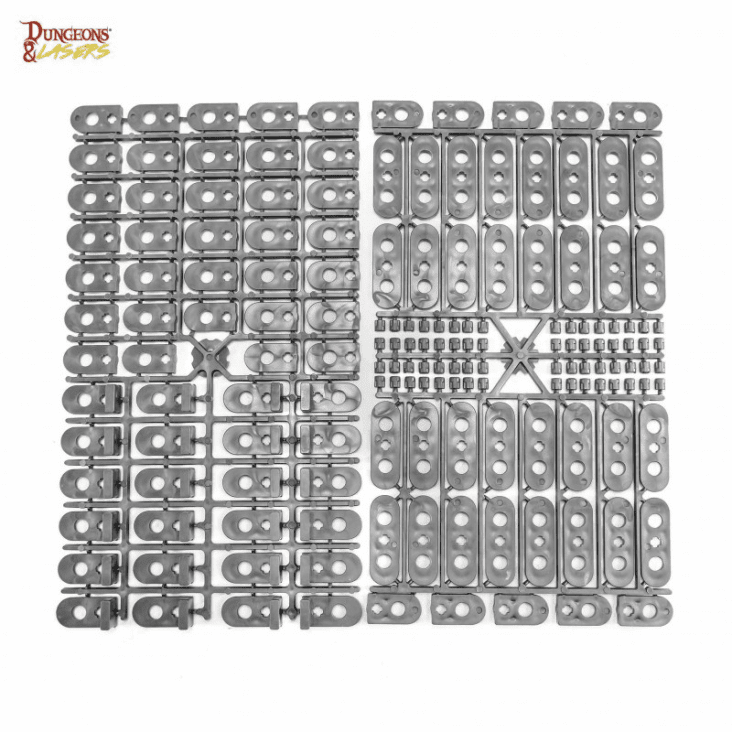 “Dungeons and Lasers is an innovative plastic tabletop terrain system based on tiles, scaled for any game with 28-32mm miniatures. Available in both sci-fi and fantasy styles, fully modular design allows you to mix different sets and themes any way you please. Made of hard, durable and richly detailed plastic D&L terrains are designed to be as easy to assemble and rebuild as possible, with no glue required. Stackable architecture and a vast amount of customization bits allow for a unique setting every time you play. Dungeons & Lasers is a constantly expanding range of products that offer fantastic value for money and endless possibilities limited only by imagination.”