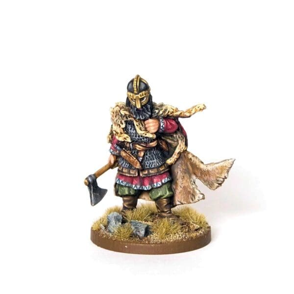 The names of the many Viking warlords are the stuff of legend, yet there were probably many other great warrior leaders that we know little or nothing about. These fearsome warriors would have led perhaps smaller raiding parties or may have been trusted companions to more famous leaders. This warlord figure represents such a warrior. A man who had achieved his position via the blood of his rivals and enemies.
