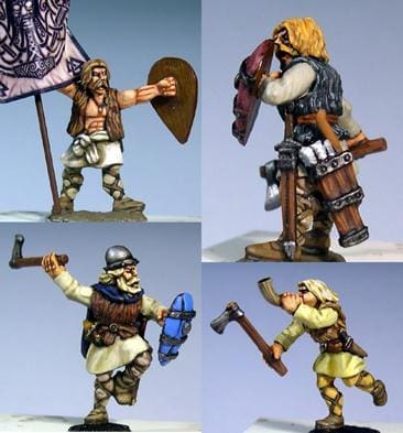 Each pack will come with 2 wooden teardrop shields & 2 smooth teardrop shields, axes where appropriate & 2 bow clips.