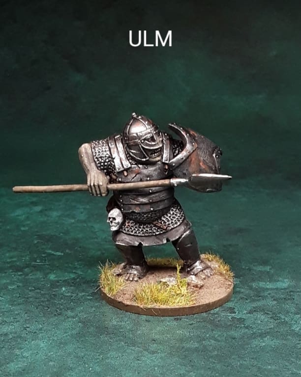 These wargaming miniatures are made in metal and are size 28mm. They figures are intended as 28mm scale, however, as they’re meant to be massive in comparison to regular height characters, they stand at approx. 45mm high.