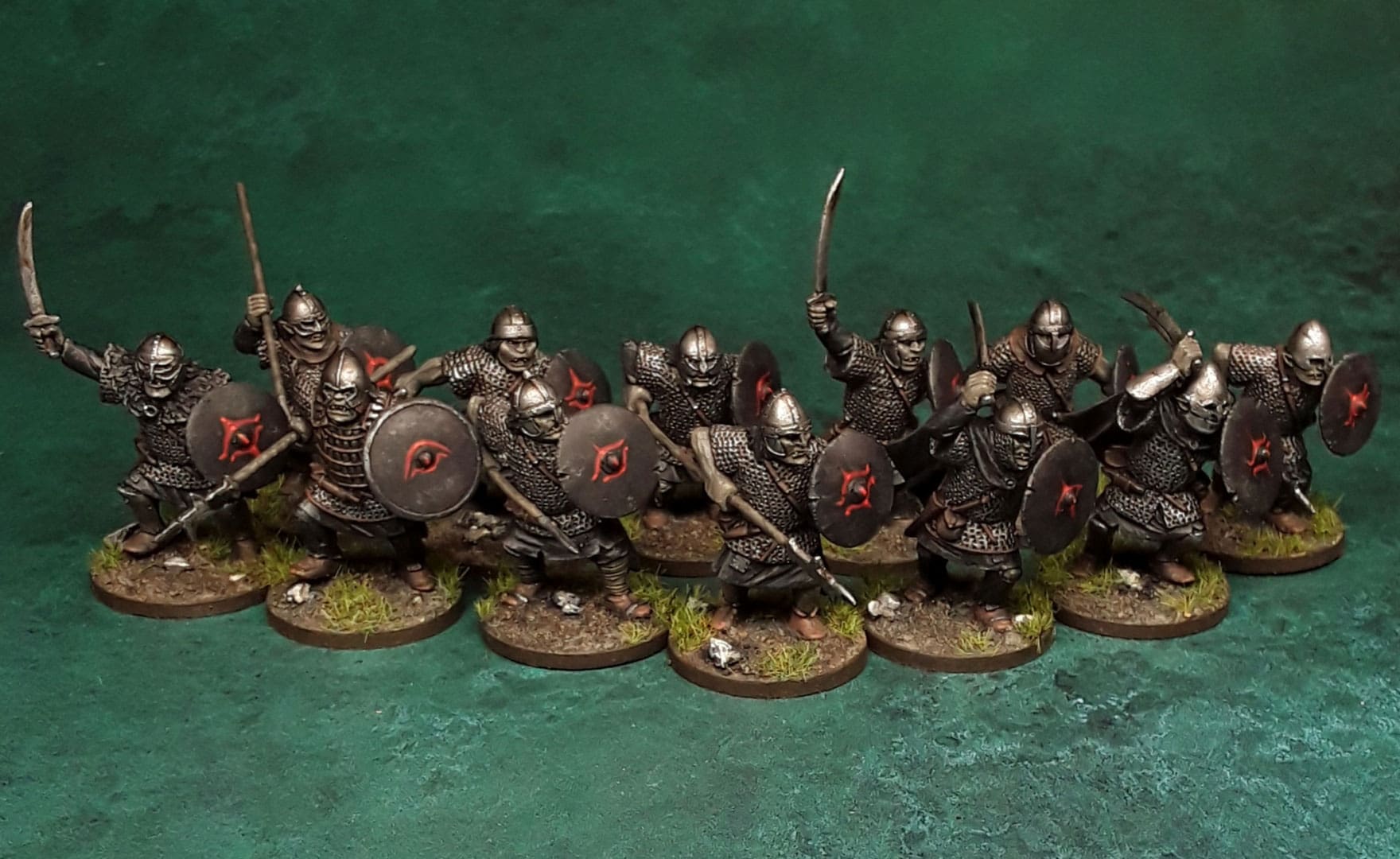 The Uruk all come with appropriate separate weapons, shields and plastic bases.