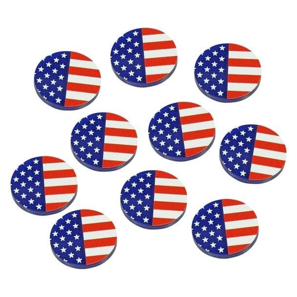 BRIGHTLY COLORED TOKENS – Premium Printed 25mm USA Stars & Stripes roundel. Identify your Allies troops using these tokens