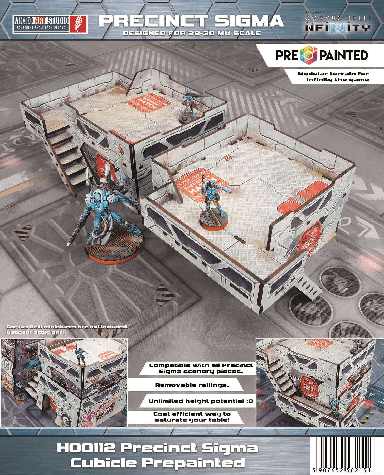 The Precinct Sigma Cubicle is a set of two buildings, perfect for Infinity the Game by Corvus Belli.