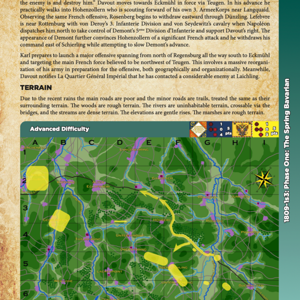 Fourteen historical scenarios may be played individually or refight the historical campaign of 1809: The Bavarian Spring.