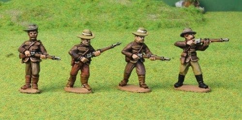 The Pioneer Column were the first troops sent into Matabeleland by Cecil Rhodes. In 1890 this column passed through Matabeleland without fighting and set up a new colony in Mashonaland on the Matabele border. These figures can be used as Pioneer Corp or can represent a member of the original Corp wearing his jacket during the Matabele War in 1892. The jacket is the type favoured by irregular units throughout the late Victorian period, so these figures can represent lots of different troops throughout the Empire.