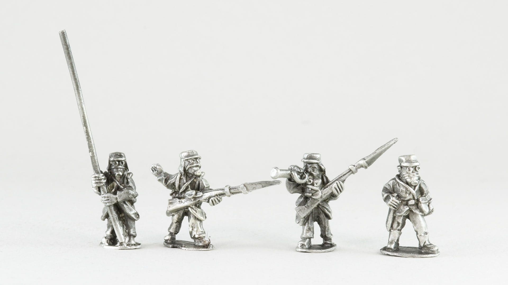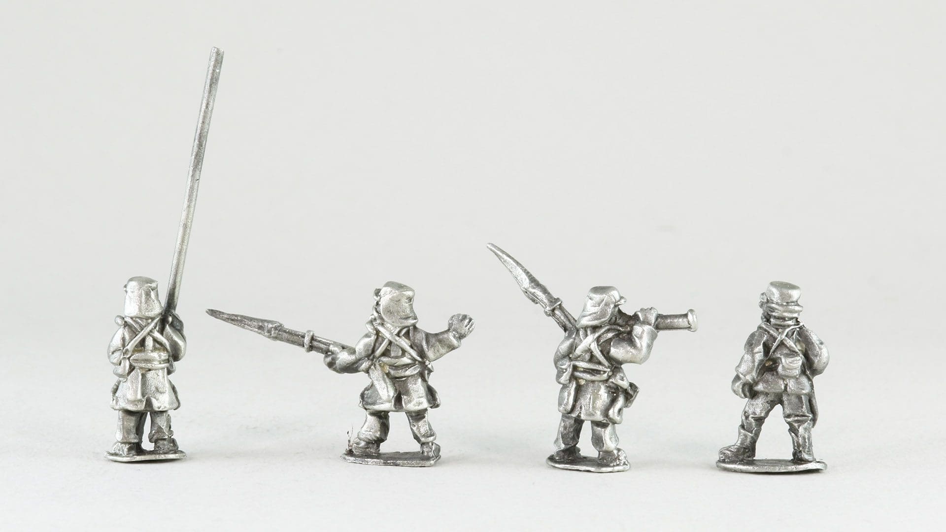 18mm metal miniatures2 each of 4 variants (8 Total)(Officer, Standard, NCO & Musician)Supplied unpainted