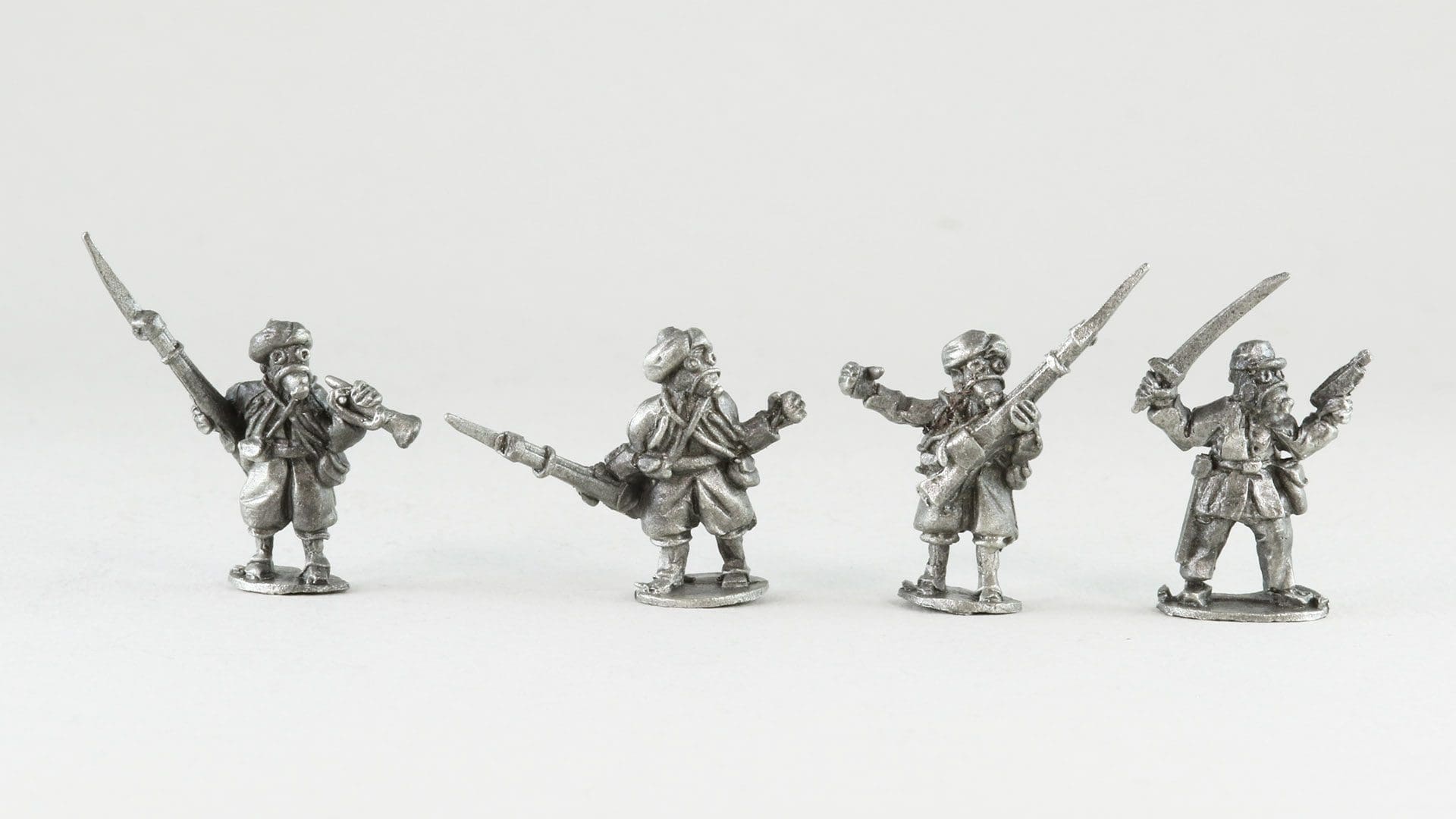 18mm metal miniatures2 each of 4 variants (8 Total)(Officer, Standard, NCO & Musician)Supplied unpainted