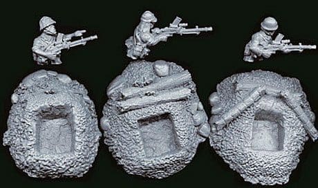 Japanese Imperial Army with M99 LMG in foxholes.3 x 28mm miniatures and diorama bases Sculpted by Nick Collier