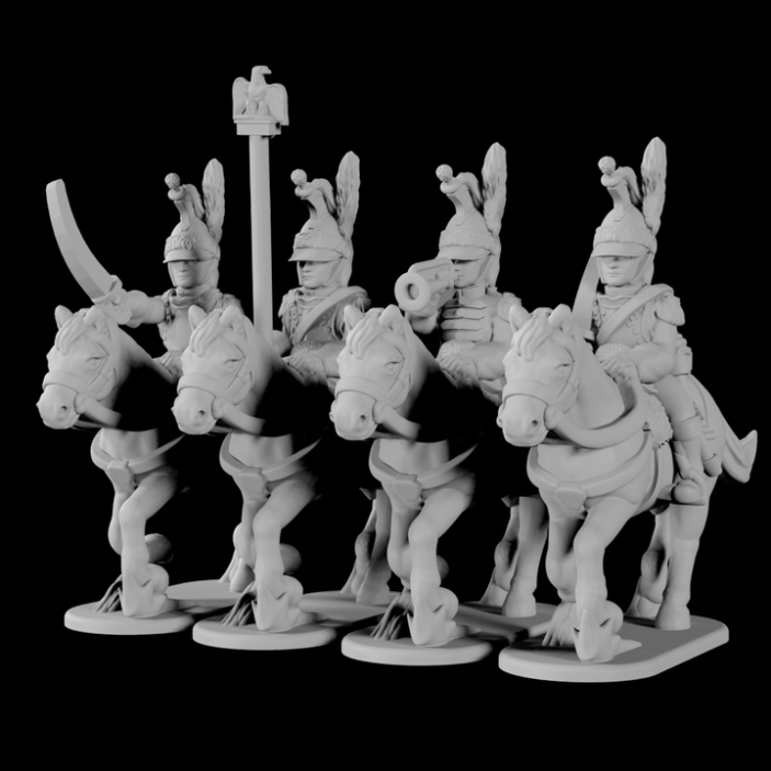 One Formation: one Division de Grosse Cavalerie appropriate for the Mid-Late Napoleonic period, designed and configured for use with ESR Napoleonics Series 3. May be used with other Napoleonic game systems.