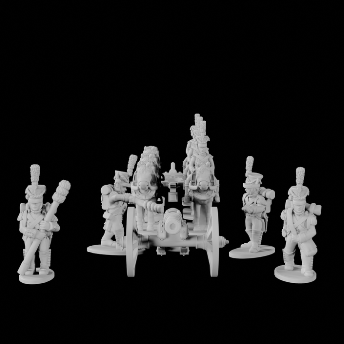 One Compagnie 12-pdr Réserve Artillerie en batterie et train (gun, four crew, limber, train teams)