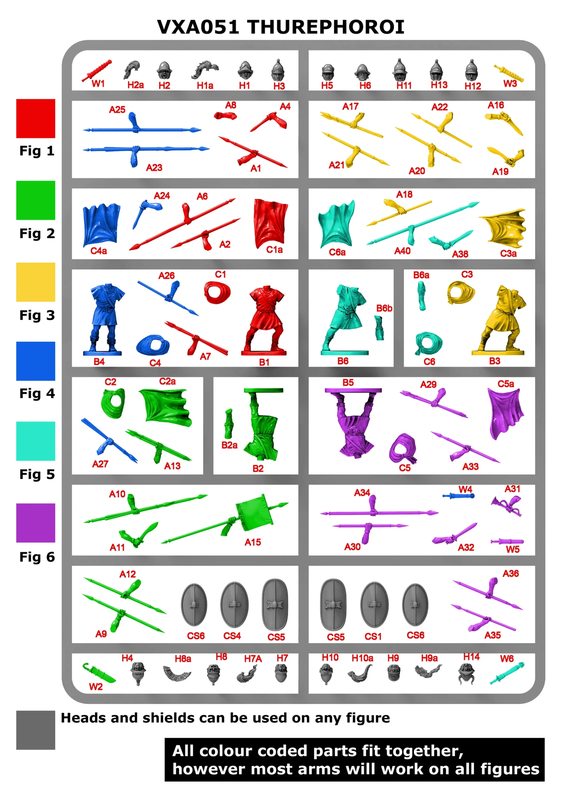 There are 36 Long thrusting spear options held in the left shield hand, enough for all figures in the set.
