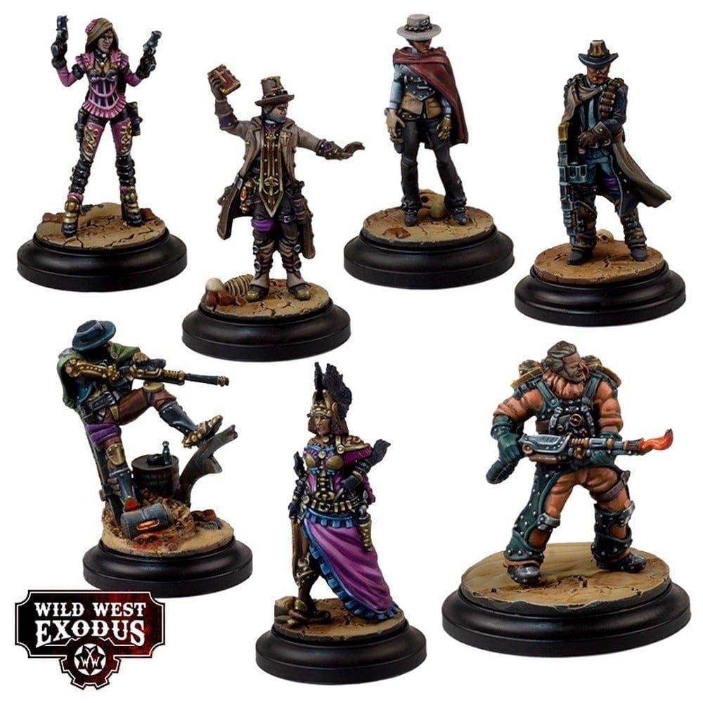 The Only God Forgives Posse kit builds seven multi-part resin miniatures;
