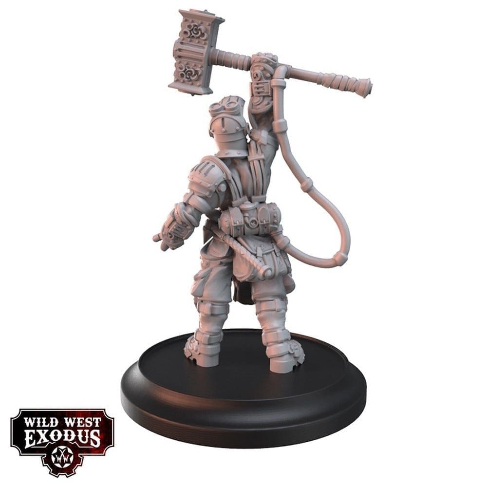 Many a fireside tale includes the appearance of Wayland the Smith. Often such stories feature a desperate and lonely rider who suffers a malfunction with her Iron Horse or the machinery of a struggling mine fails and the town faces ruin. Wanting no reward, save for a silver dollar if it can be spared, this man of legend appears from the horizon and fixes the problem. Before more than a thank you can be uttered, the stoic giant is on his way again, never staying in the same place for more than a night once his work is done. Wayland is an impressively large man with a strength as formidable as the steel with which he plies his trade. Often he lends a hand along with Panday Beck, his erstwhile assistant, who is seldom far from his side. What the fates have in store for Wayland as he roams the Frontier, who can say? Certainly, while Wayland doesn’t go looking for trouble, his journey has taken him to some of the highest and lowest of company. Even the alien Watchers and scheming Hex and Order have had reason to be thankful for his intervention and assistance. Quite how this mysterious wanderer can aid such wildly differing factions is but one further mystery that adds to his legend.
