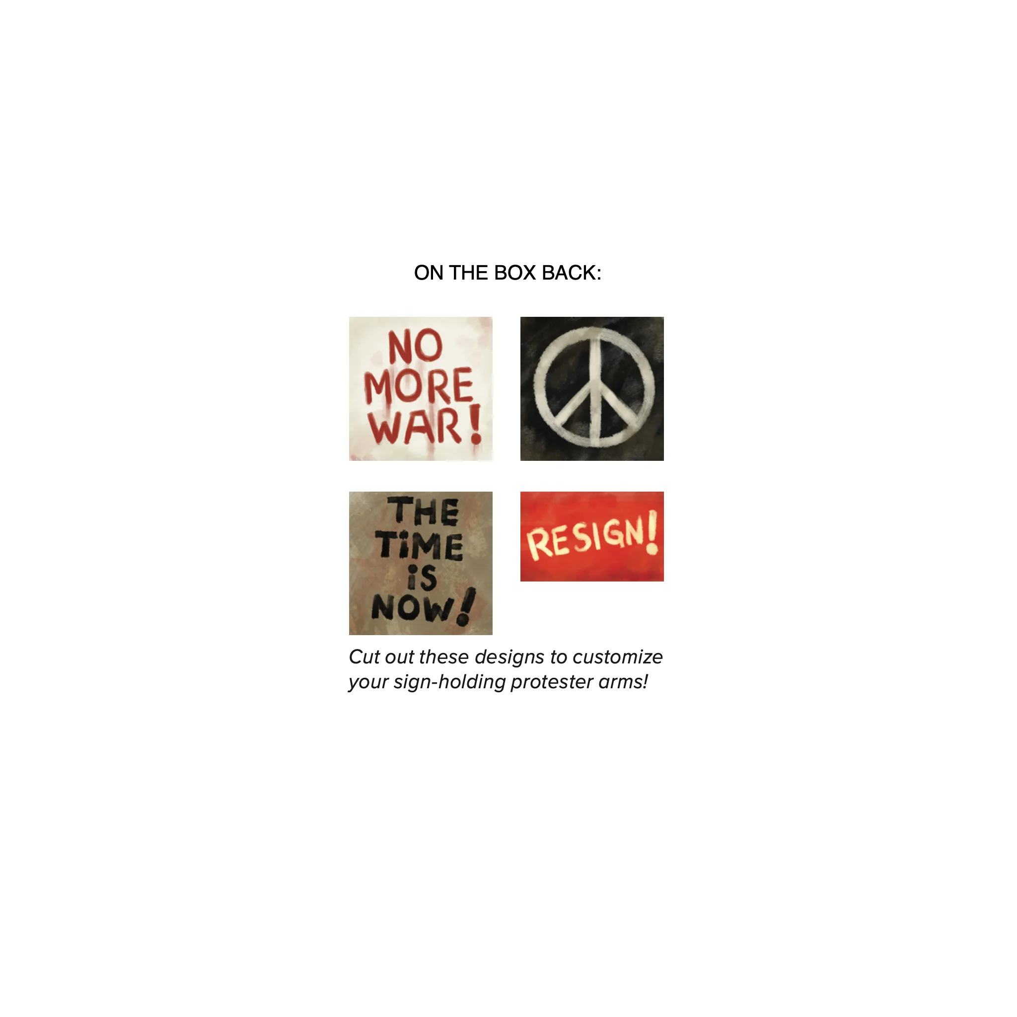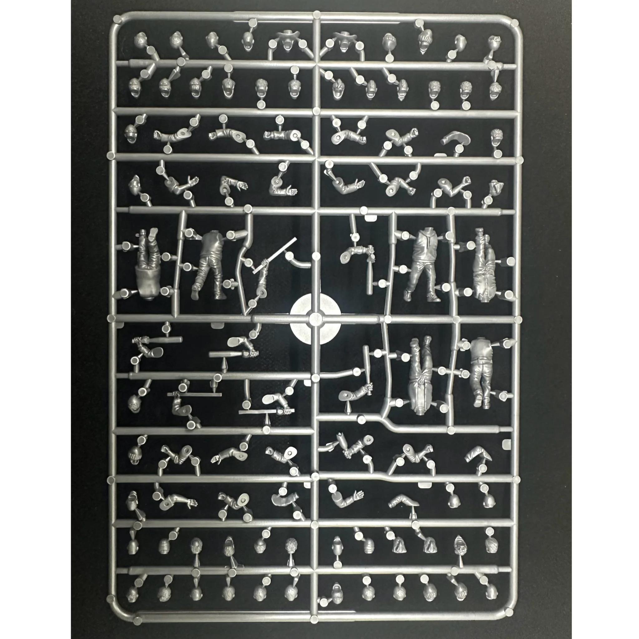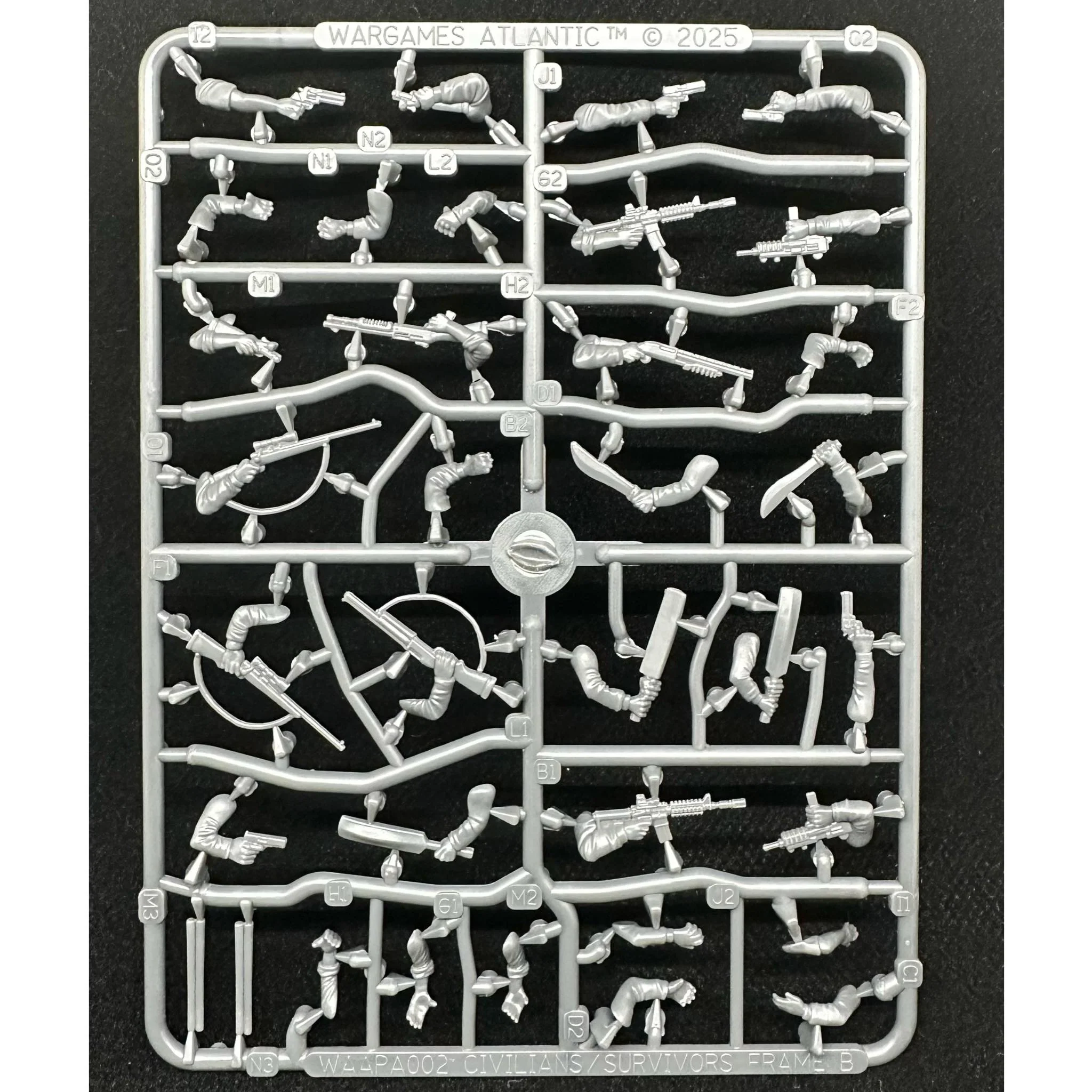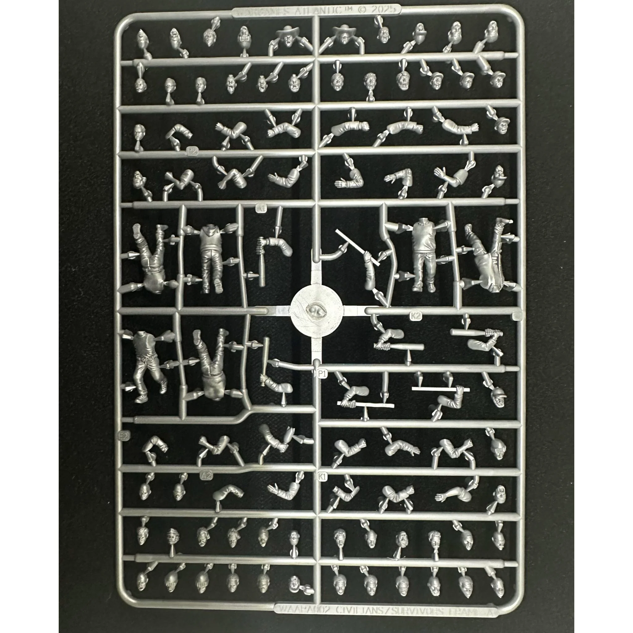 Freeze, flee, or fight? This hard plastic box set lets you build them all! Two unique frames give you six unique bodies that you can customize to either hold weapons, open handed in flight, or you can even turn some into sign-holding protesters!