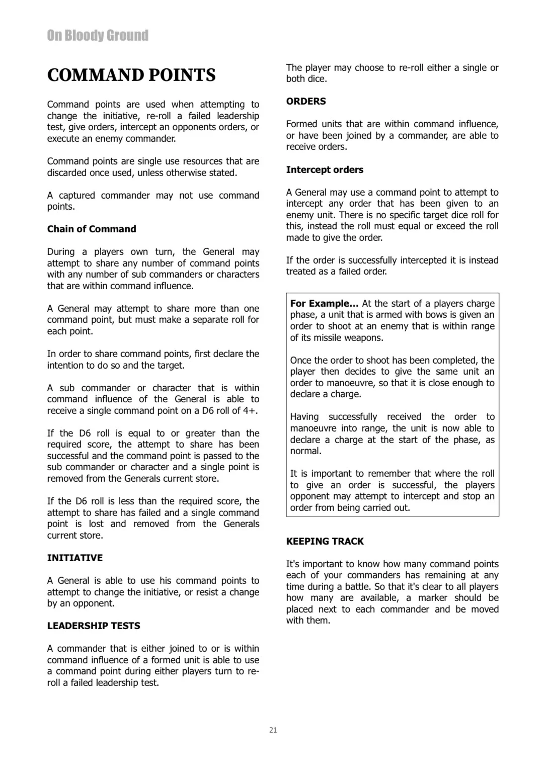 A 54 page A4 perfect bound mass combat rulebook with common sense rules for movement, shooting and combat, along with a command and orders structure which produces a highly tactical, dynamic and versatile wargame, that is great fun for both seasoned gamers and beginners alike.